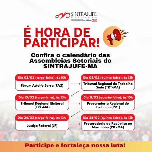 Confira o calendário das Assembleias Setoriais do SINTRAJUFE-MA